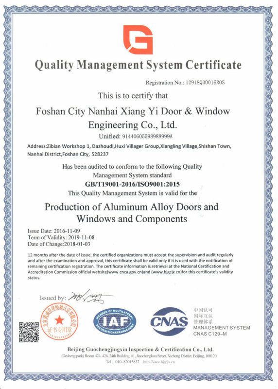 廣東祥意門窗工程有限公司是一家專注鋁合金門窗工程及門窗加工、制作的優(yōu)質企業。公司憑著精湛的技術服務和優(yōu)良的售后服務,已成功完成多個優(yōu)質項目。